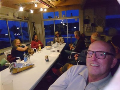 Det blev ett mycket trevligt och bra 30-årsjubileum där vi inledde med en gemensam insegling till Ekskär. Några kom direkt för att hinna och några kom under kvällen. Vi blev tillslut 12 båtar och 18 personer som anslöt sig till festligheterna. Roland och Annika hade Göran Cederström med ombord vilket var en stor glädjande överraskning för oss alla. Vi skålade och hälsade alla välkomna. Där efter blev det tipspromenad med kaffe och tårta i styrhytten på halva vägen, vilket ställe att sitta och se ut över fjärden ifrån. De som ville kunde sen basta i den vedeldade bastun. Kl 18 hade vi dukat långbord på altanen där vi satt och hade en härlig gemensam middag långt in på kvällen.